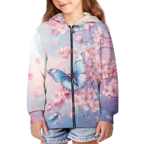 AFPANQZ Girls Hoodie Kids Hooded Jacket Lightweight Long Sleeve Zip Up Sweatshirt Fall Clothes with Pockets 6