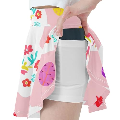 White Bunny Colorful Floral Pink Girls Skorts Athletic Shorts Skirts with Shorts Pink Cute Flowy Skirt 3t 4