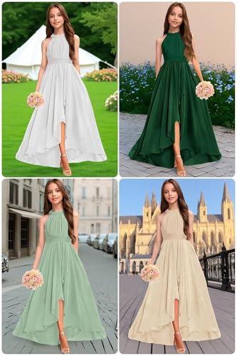 More information about Chiffon Junior Bridesmaid Dresses Pleated Flower Girl Dress High-Low Evening Formal Party Gown for Wedding