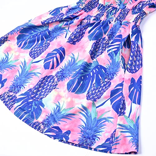 Perfashion Girls Summer Dresses Printed Casual Loose Sundress Smocked Waist Roll-Sleeve 4