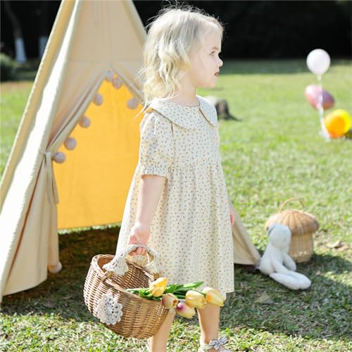 Peter Pan Dress Girls Summer Puff Sleeved Girls Floral Dress Back Wood Buttons Boutique Girls Casual Dress 6