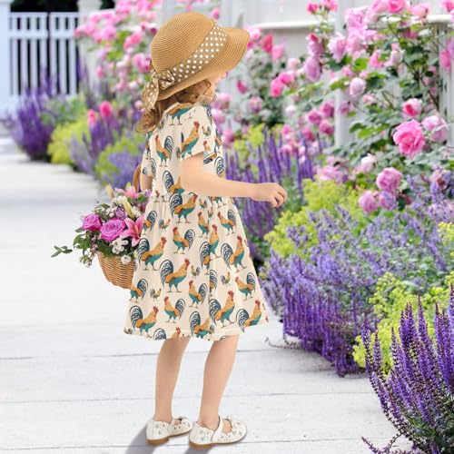 Toddler Girls Dress Summer Roosters Dresses Short Sleeve Clothes Casual Sundress 2-8Y 6
