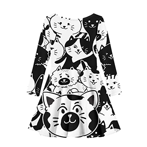 Cute Long Sleeve Girls Skater Dress Casual Funny Animal Floral Print Swing T Shirt Dress 5