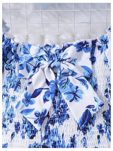 Verdusa Tween Girl's Boho Floral Puff Short Sleeve Dress Bow Knot A Line Ruffle Midi Dresses 5