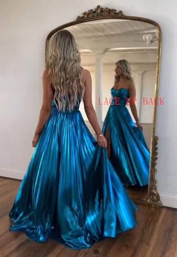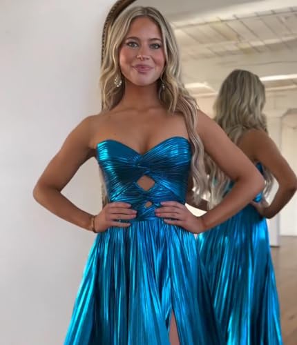 HOT ! Loyeloy Sparkly Metallic Prom Dresses with Slit A Line Keyhole Satin Long Prom Ball Gowns for Women