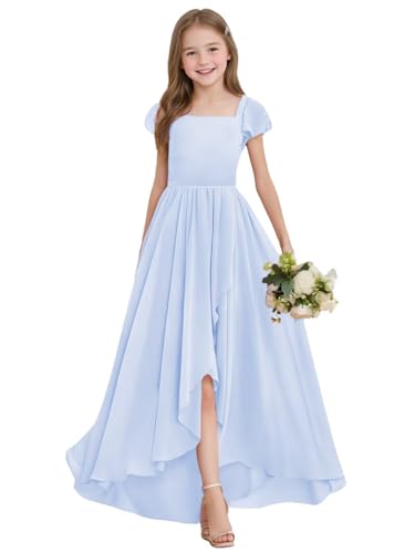 • Features: Chiffon Junior Bridesmaid Dresses for Girls, Square Neck Flower Girl Dresses for Wedding, Short Sleeve Teens Birthday Party Dresses, Floor Length Chiffon First Communion Dress.