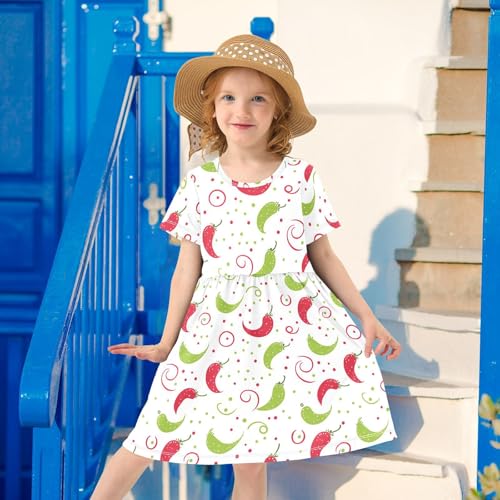 Green Chili Peppers Toddler Girls Dress Short Sleeve Casual Dresses 2T 202b8094 6