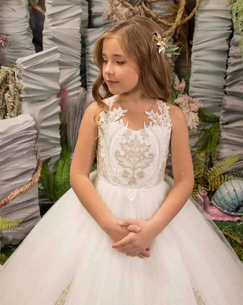 • Sleeveless First Communion Dress: Designed with a sleeveless cut, this first communion dress ensures freedom of movement, keeping your girls comfortable throughout the event