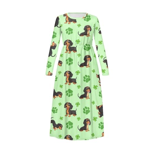 Girl's Maxi Dress Kids A-Line Dress with Pockets Long Sleeve Party Dress Casual Swing Dresses 6