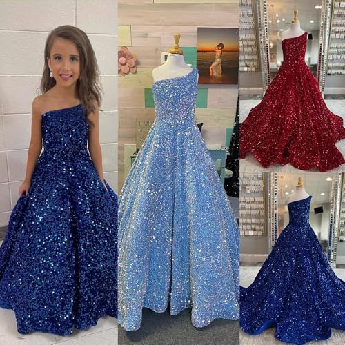 One Shoulder Sequin Pageant Gowns Sparkly Ball Gown Flower Girl Dresses for Wedding Princess Kids Toddler Dress 1