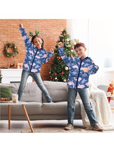 Cute Dolphin Pink Purple Girls Fleece Jacket Girls Fall Jacket Boys Coats Zip Up Hoodie Children Sherpa Warm Outerwear 2-10T 5
