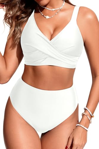 Aqua Eve Women's High Waisted Bikini Set Two Piece Tummy Control Swimsuits High Cut Bathing Suits 2025 2