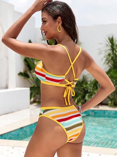 More information about ZAFUL Women's Colorblock Stripes Triangle Bikini Cute String 2 Piece Swimsuit High Cut Two Piece Bathing Suit