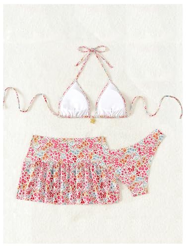 • Feature: Floral Print, Metal decor, Halter Neck, Triangle Cup, Tie Back, Bikini Top, Matching Bikini Bottom, Layered, Ruffle Swim Skirts, Three Piece Bathing Suits for Women