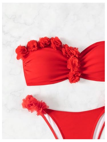 More information about MakeMeChic Women's 3D Flower Bikini Set Strapless Bandeau Tie Back Thong Bathing Suit