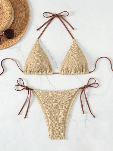 COZYEASE Women's 2 Piece Bikini Sets Smocked Halter Triangle Top Tie Side Bottom Swimsuit Bathing Suit Beachwear 6