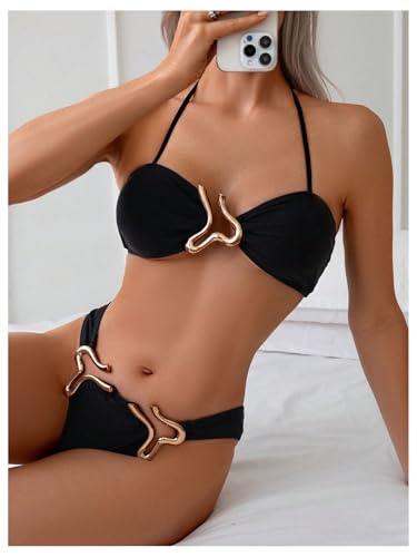More information about MakeMeChic Women's Two Piece Bikini Set Halter Ring Backless Summer Bathing Swimsuits