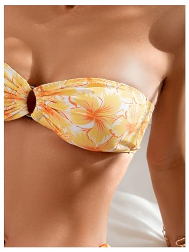 More information about WDIRARA Women's Strapless Bandeau Smocked 2 Piece Swimsuit Floral Print O Ring Cheeky Bottom Bikini Set Bathing Suit