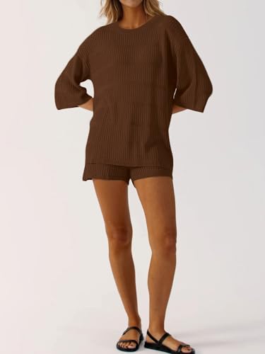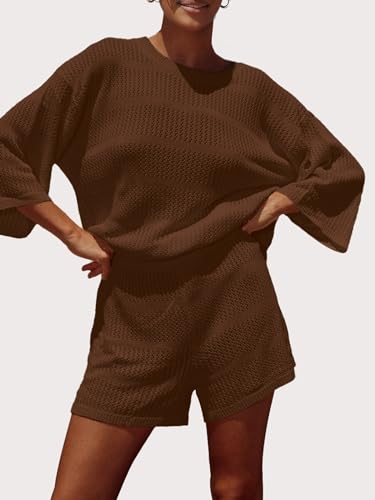 • Feature: NO ANY LINING, SEE-THROUGH. This two pieces sets feature 3/4 sleeve, classic crew neckline, drop shoulder and soft knit crochet top and elastic waist shorts. The whole hollow out design add casual and breezy feel to this short set, combining comfort and style.