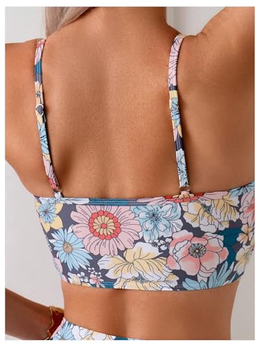Floerns Women's Floral Bikini Set Square Neck High Waisted 2 Piece Bathing Suits 2