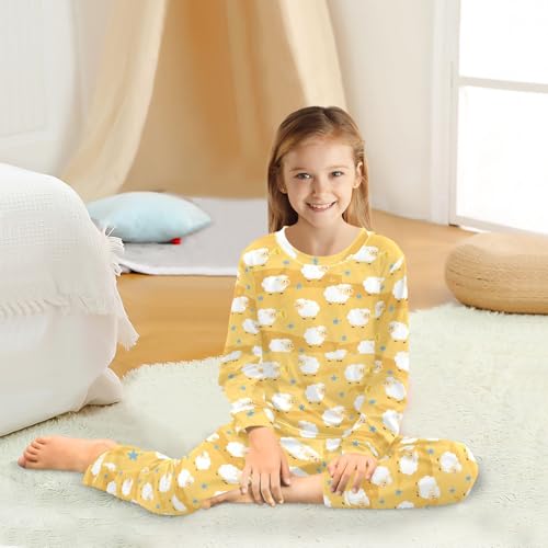Little Sheep Yellow Soft Pajama Set for All Seasons,Breathable Pjs Long Sleeve Sleepwear,Comfy Loungewear 2 Piece Underwear Set 5T 6
