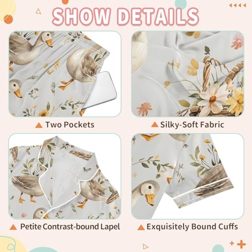 ALAZA Flower Basket Duck Satin Pajamas Set Short Sleeve Button Down Sleepwear Summer Pjs 2 Piece 4