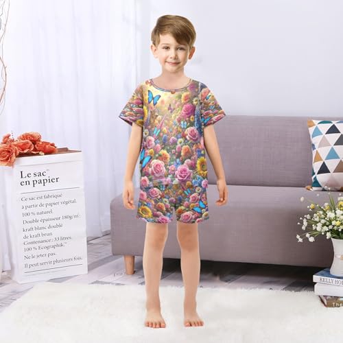 Butterflies Flowers Pajama Set Short Sleeve Summer Pajamas Sleepwear Nightwear Set Cotton 5Y 4