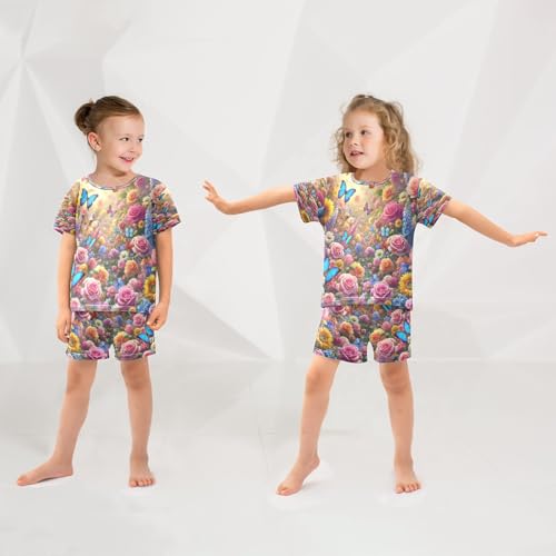 Butterflies Flowers Pajama Set Short Sleeve Summer Pajamas Sleepwear Nightwear Set Cotton 5Y 5