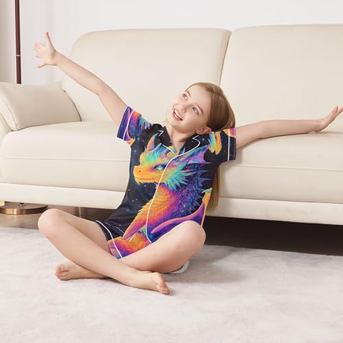 ALAZA Colorful Dragon Cute Stylish Satin Pajamas Set Short Sleeve Button Down Sleepwear Summer Pjs 2 Piece 1