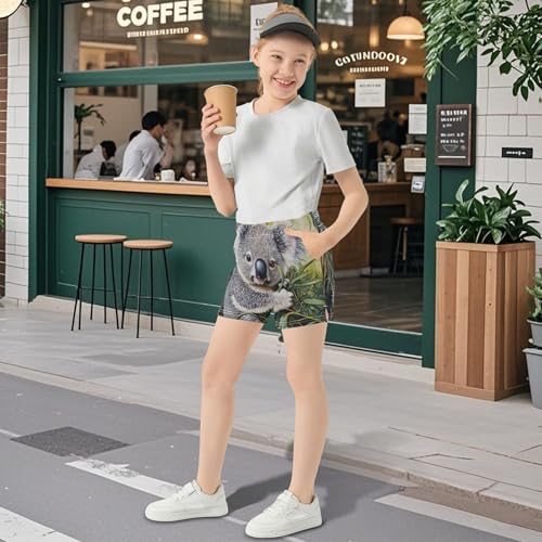 Girls Lounge Shorts Cute Koala Green Leaves Print Youth Athletic Pajama Sleepwear Cute Summer Clothes, X-Small 4