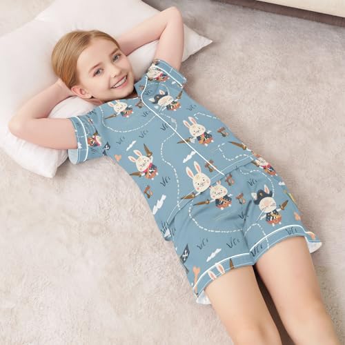 ALAZA Rabbit Bunny Pirate Pajamas Satin Pajama Set Short Sleeve Button Down Sleepwear 3