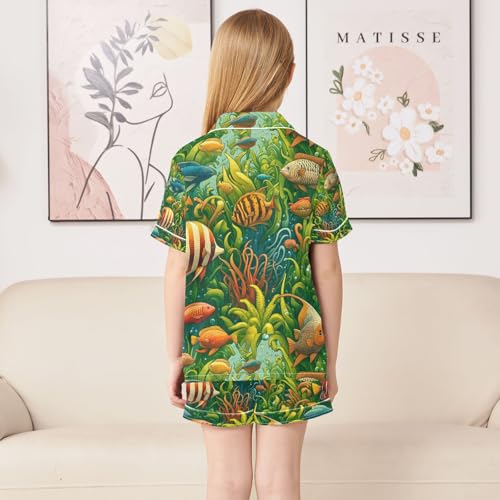 senya Fish A Satin Summer Pajama Sets Silk Short Sleeve Button Down Sleepwear 6