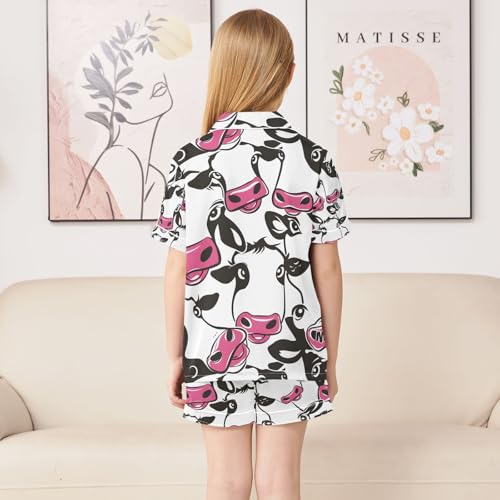 senya Cute Cow Face Satin Summer Pajama Sets Silk Short Sleeve Button Down Sleepwear 1
