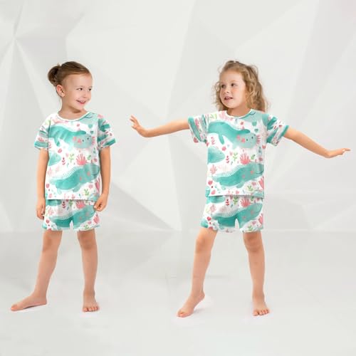 More information about Pajama Sets Short Sleeve Axolotl Creatures with Plants Soft Cotton Summer Sleepwear 2 Piece PJS Size 5-14T