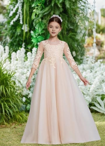 • Junior bridesmaid dress features crew neck with tulle long sleeve design, creating the dress a feeling of delicacy and elegance; Full applique bodice,it will make your girl so stylish and fancy;Puffy tutu skirt,will let your girl have so much fun of twirling,beautiful button closure, the dress will show your girl's charming demeanor with every step.
