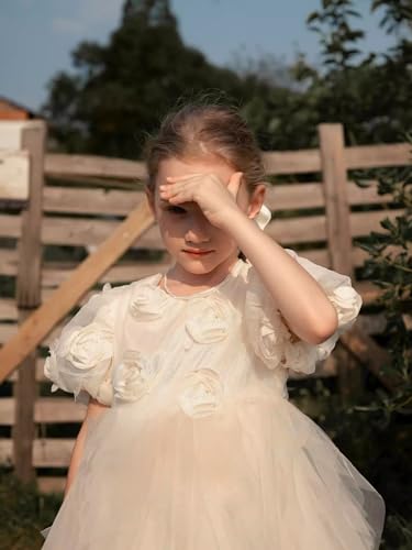 TSUKISHIRO Floral Rose Flower Girls Dress, Toddler Tutu Dress, Tulle, Short Sleeve, for Wedding, Special Occasion Dresses 5