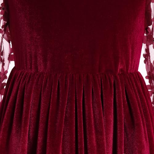 IBTOM CASTLE Velvet Dress for Girls 3D Flower Christmas Dress Mesh Sleeve Princess Party Dress Birthday Outfits Fall 6