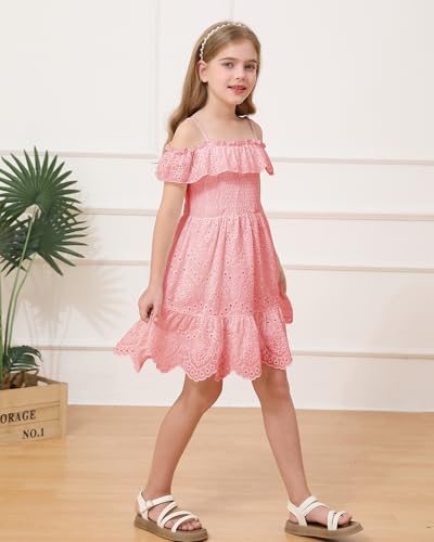 Weebaby Tween Girls Dresses Summer Outfits Smocked Dress Casual Sundress Lace Teen Girl Clothes 7-14 Years 4