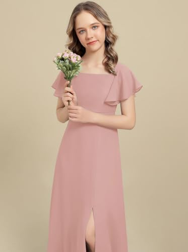 • Exquisite Design: This chiffon jr bridesmaid dress with flutter sleeves, aquare neckline, leg slit,offers both elegance and flexibility. A-line high-waisted design modify the waistline. Stand out from the crowd in this formal dress for girls