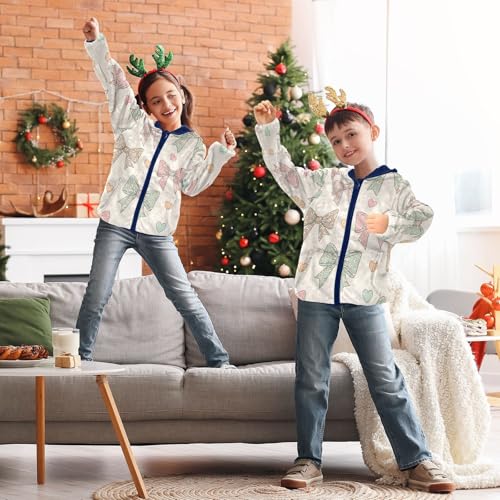 Lovely Bows Hearts and Flowers Toddler Fleece Jacket Girl Boys Hooded Fleece Jacket Coat Warm Outwear Zip-up 3-10T 3