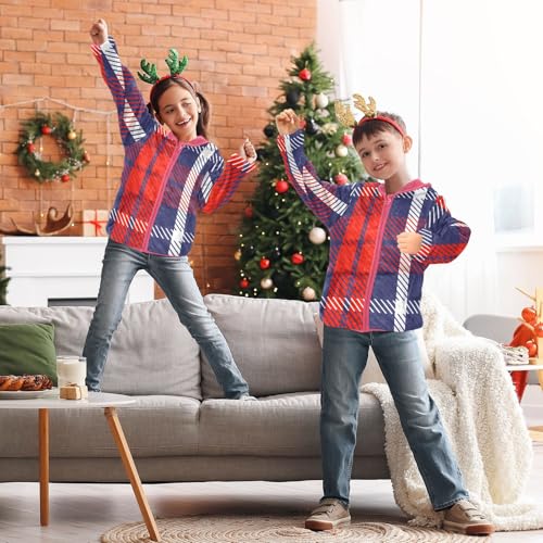 GuoChe Plaid Scotland Blue Red Kid Fleece Jacket 4