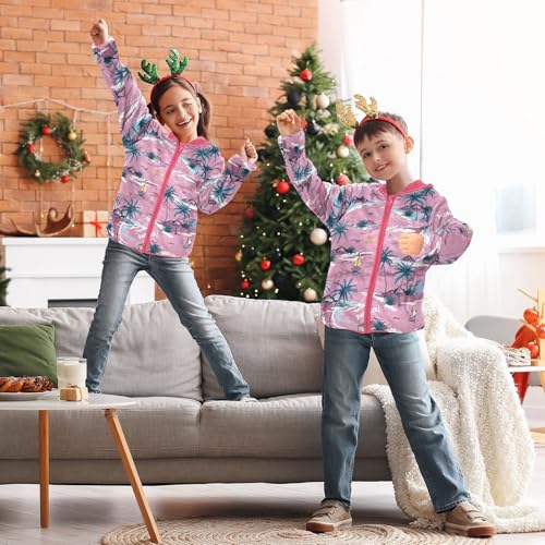 OTVEE Palm Trees Beach on Vintage Pink Kids Hoodie Jacket Fall Spring Full Zip Warm Outwear Coat 6