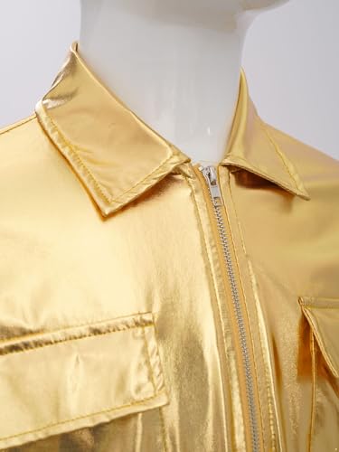 Jhaoyu Kids Girls Shiny Metallic Jacket Coat Long Sleeve Turn-down Collar with Flap Pockets For Hip Hop Dancewear 5