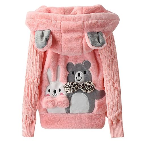 Jhaoyu Kids Girls Fashion Jackets Coats Faux Fur Cotton-padded Bear/Rabbit Applique Ear Hooded Long Sleeve Overcoats 5