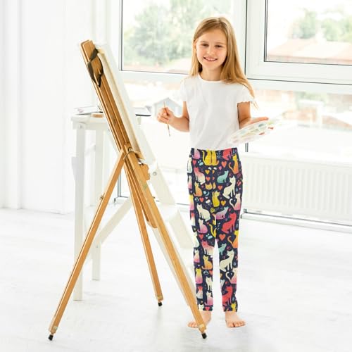 Cute Cats Girls' Leggings Toddler Doodles Hearts Kids Yoga Pants Dance Active Tights 4T 7