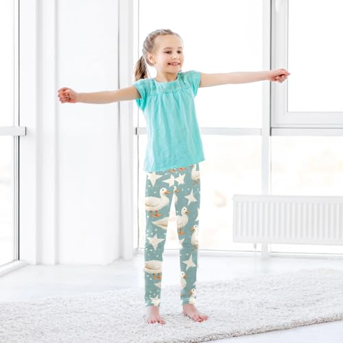 White Duck with Star Girls Leggings Athletic Pants Tights Stretch Bottom 4