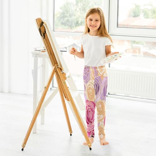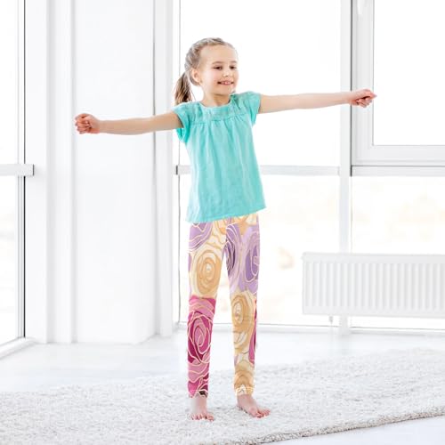 Bolaz Toddler Girls Leggings Printed Yoga Pants Leggings Purple Yellow Rose for Kids 4