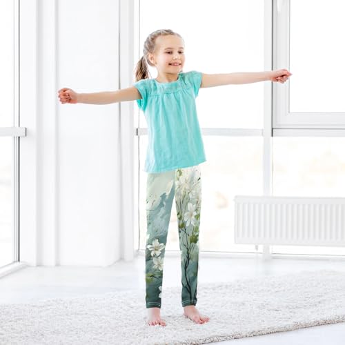 Toddler Girls Leggings Printed Yoga Pants Leggings Humming Bird White Flower for Kids 7