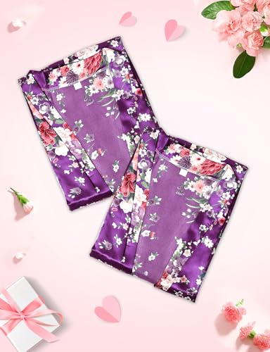 12 Piece Kids Silky Satin Robes Girls Spa Robes for Girls Party Floral Kimono for Wedding Birthday Slumber Spa Party 5