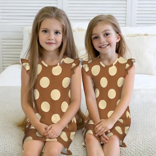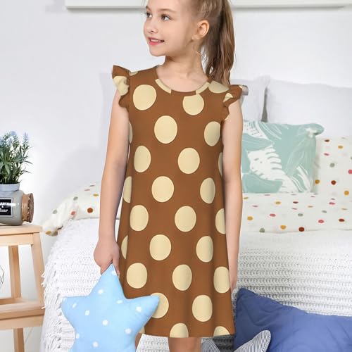 Augenstern Flutter Sleeve Nightgown Pajama Gown Brown Polka Dot Easy Pull-On Sleepwear Nightdress 6